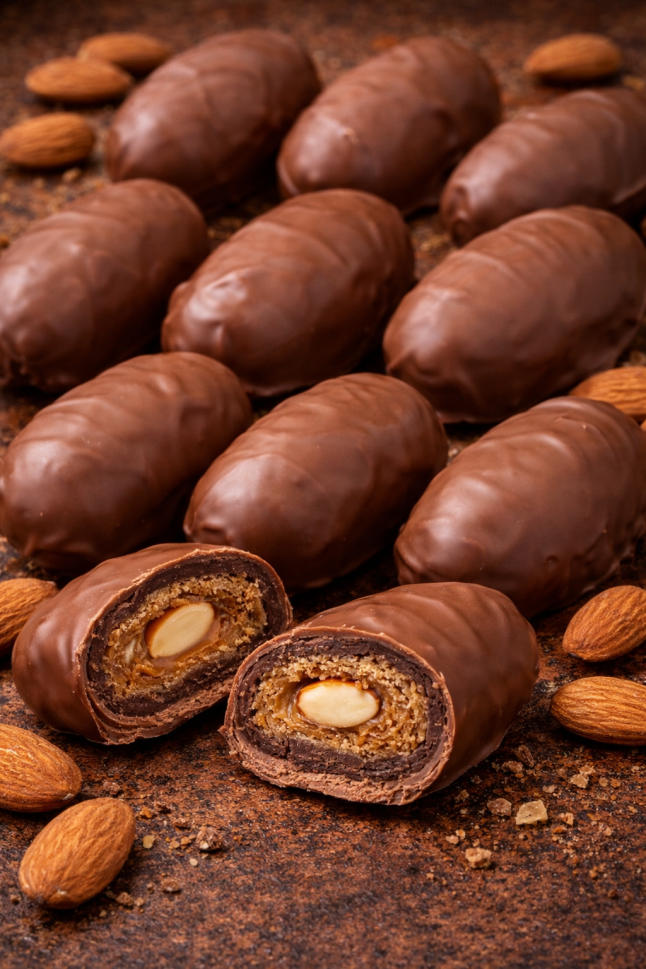 Бонбон с фурма облята с млечен белгийски шоколад и хрупкав испански бадем доставя неописуемо удоволствие на небцето и експлозия от ориенталски вкус за всеки ценител на сладките изкушения. Тези гурме БЕЛГИЙСКИ бонбони , произведени от шоколатиер НЕЦОВСКИ се произвеждат с най-високо качество.